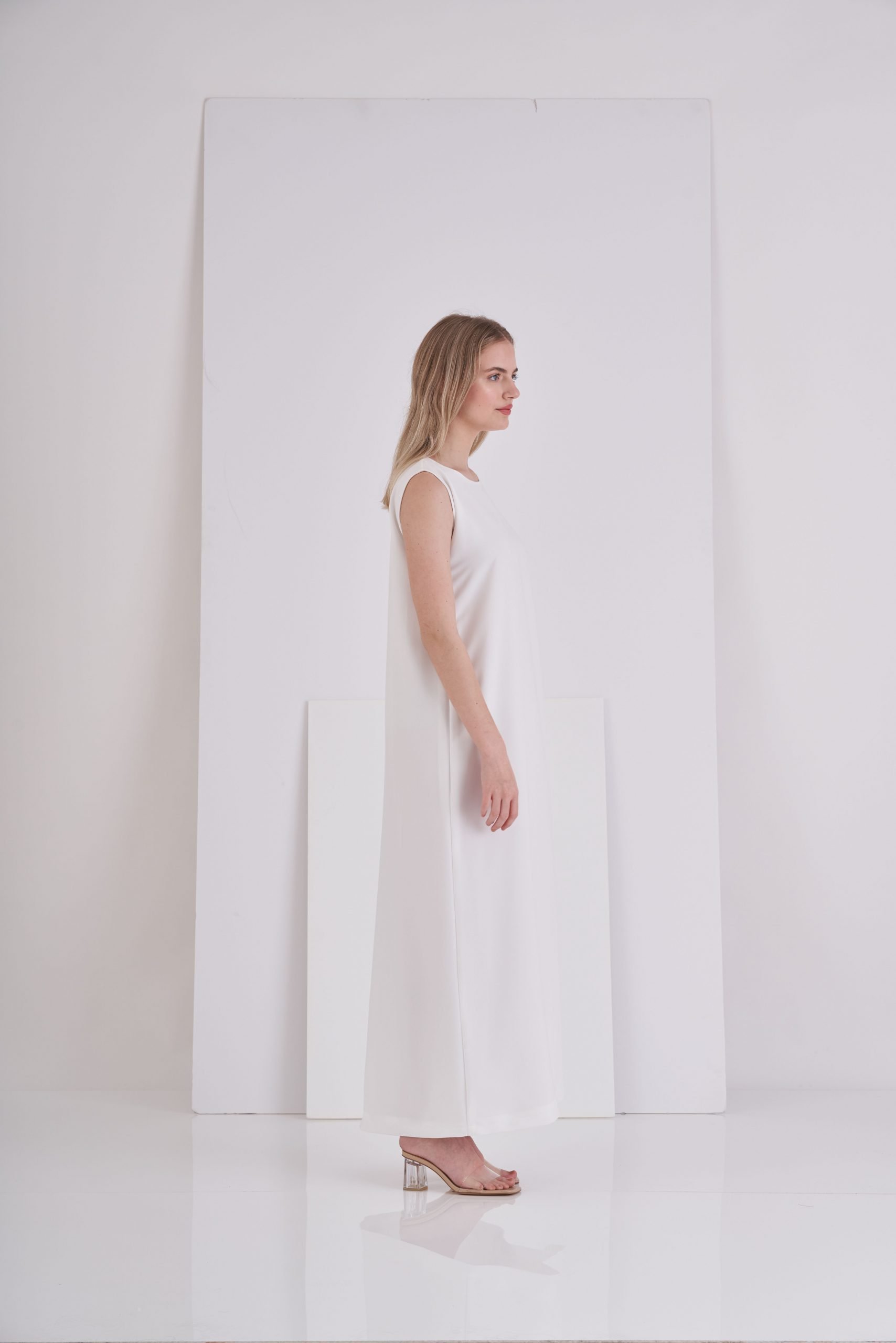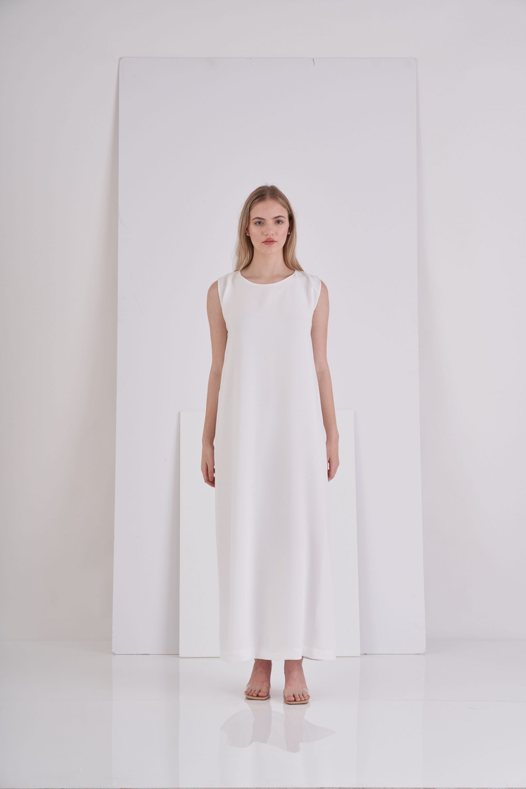 An all-time season piece, this medium-weight modern sleeveless dress is designed using crepe fabric in an A cut fit and a round neck cut. It features an inner chiffon fabric lining almost closely matching the chosen dress color.